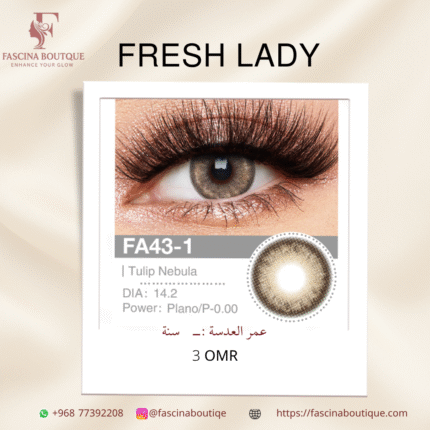 عدسات فرش ليدي – سنة كاملة من الجمال تمتعي بألوان طبيعية وجذابة مع عدسات Fresh Lady، مريحة وآمنة للاستخدام اليومي، تدوم لمدة سنة كاملة وتمنحك إطلالة ساحرة في كل مناسبة.