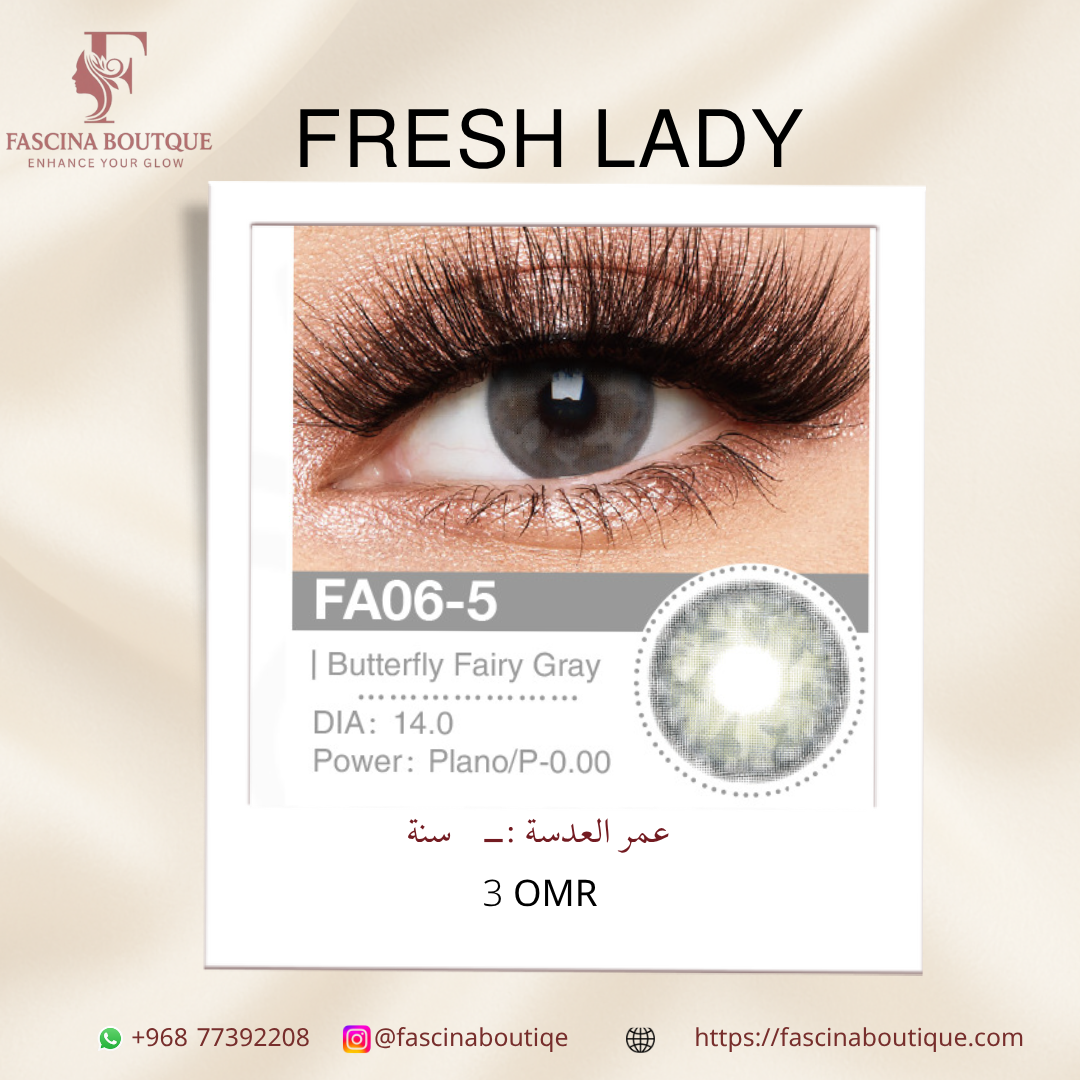 عدسات فرش ليدي – سنة كاملة من الجمال تمتعي بألوان طبيعية وجذابة مع عدسات Fresh Lady، مريحة وآمنة للاستخدام اليومي، تدوم لمدة سنة كاملة وتمنحك إطلالة ساحرة في كل مناسبة.