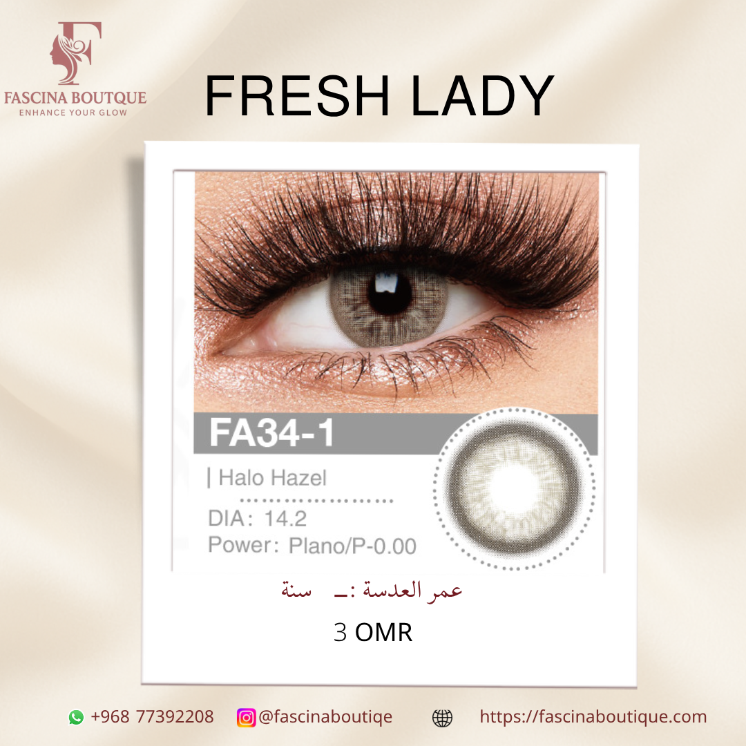 عدسات فرش ليدي – سنة كاملة من الجمال تمتعي بألوان طبيعية وجذابة مع عدسات Fresh Lady، مريحة وآمنة للاستخدام اليومي، تدوم لمدة سنة كاملة وتمنحك إطلالة ساحرة في كل مناسبة.