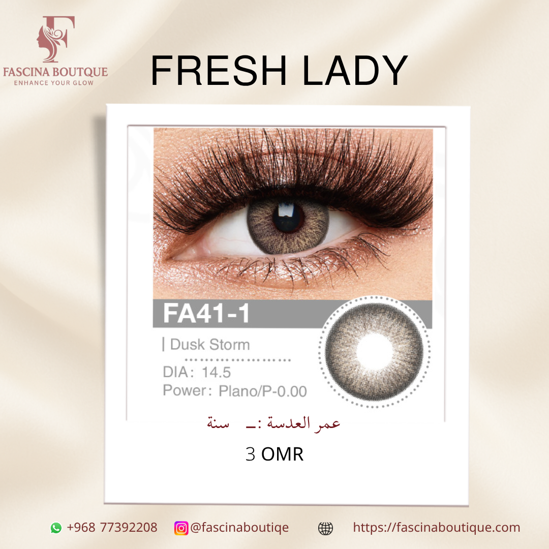 عدسات فرش ليدي – سنة كاملة من الجمال تمتعي بألوان طبيعية وجذابة مع عدسات Fresh Lady، مريحة وآمنة للاستخدام اليومي، تدوم لمدة سنة كاملة وتمنحك إطلالة ساحرة في كل مناسبة.