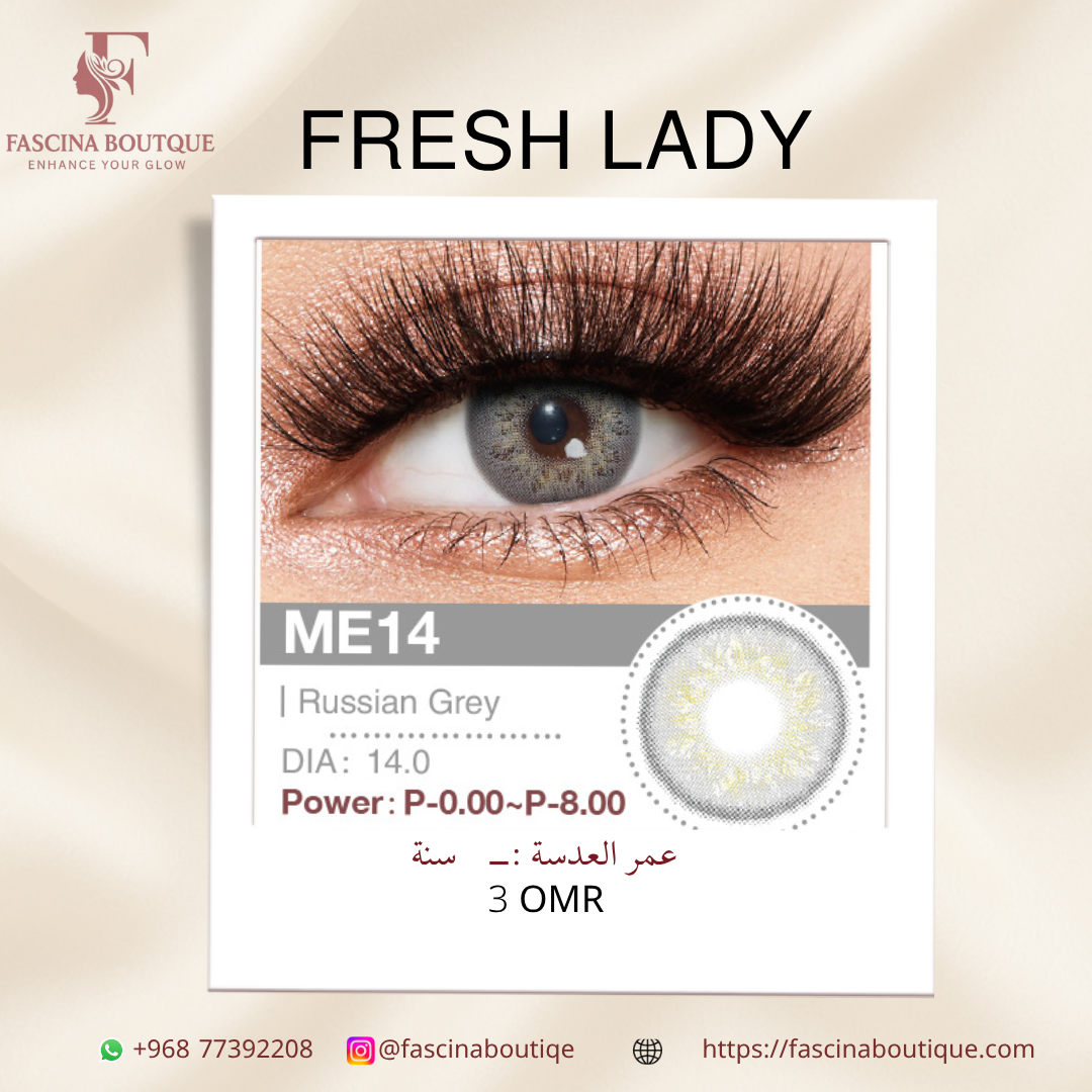 عدسات فرش ليدي – سنة كاملة من الجمال تمتعي بألوان طبيعية وجذابة مع عدسات Fresh Lady، مريحة وآمنة للاستخدام اليومي، تدوم لمدة سنة كاملة وتمنحك إطلالة ساحرة في كل مناسبة.