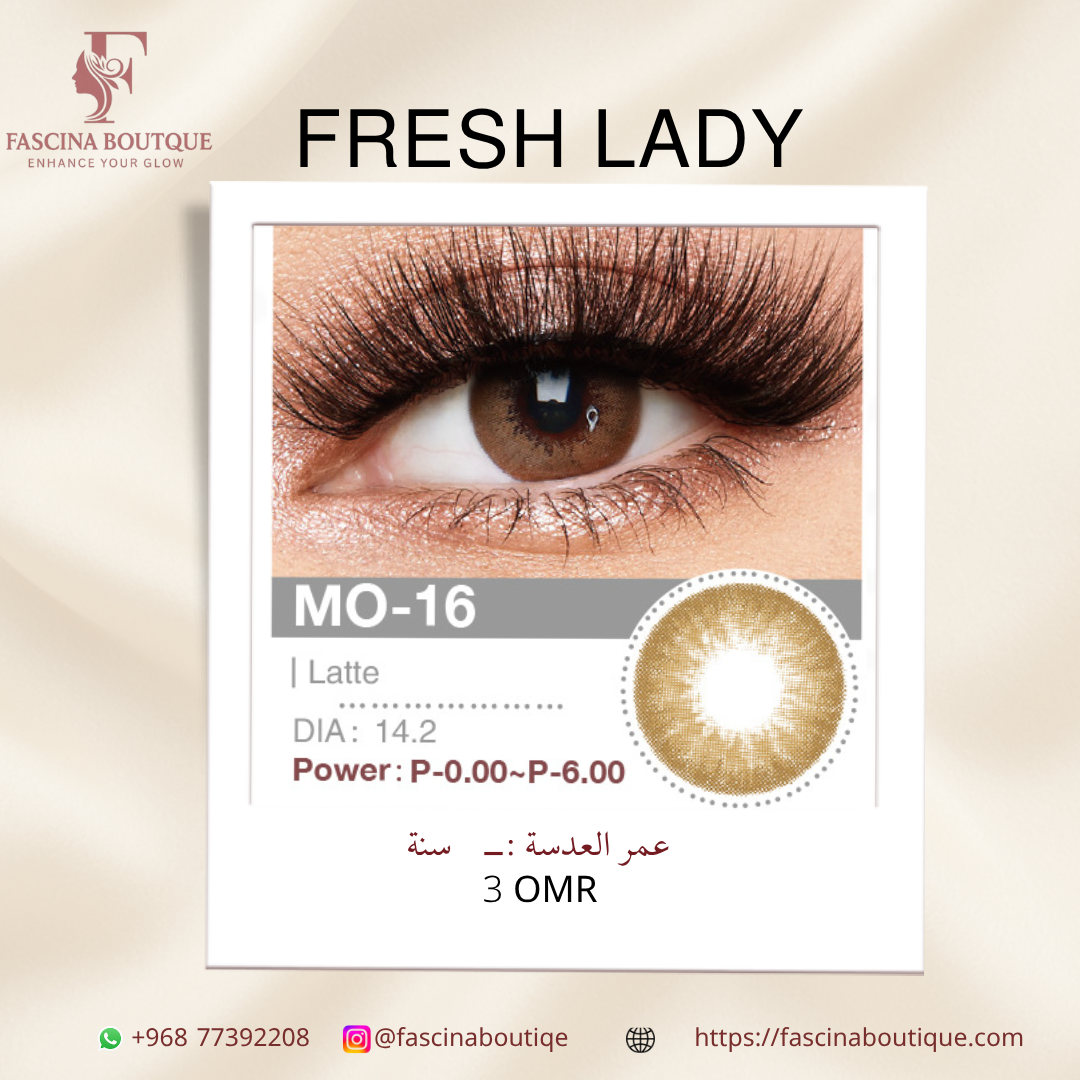 عدسات فرش ليدي – سنة كاملة من الجمال تمتعي بألوان طبيعية وجذابة مع عدسات Fresh Lady، مريحة وآمنة للاستخدام اليومي، تدوم لمدة سنة كاملة وتمنحك إطلالة ساحرة في كل مناسبة.